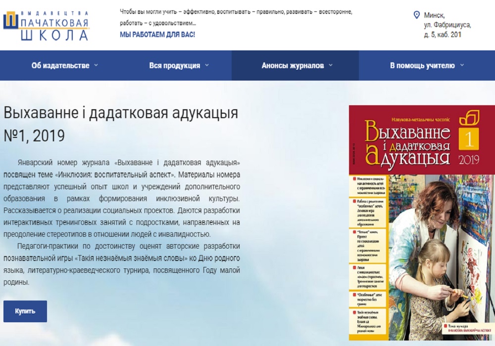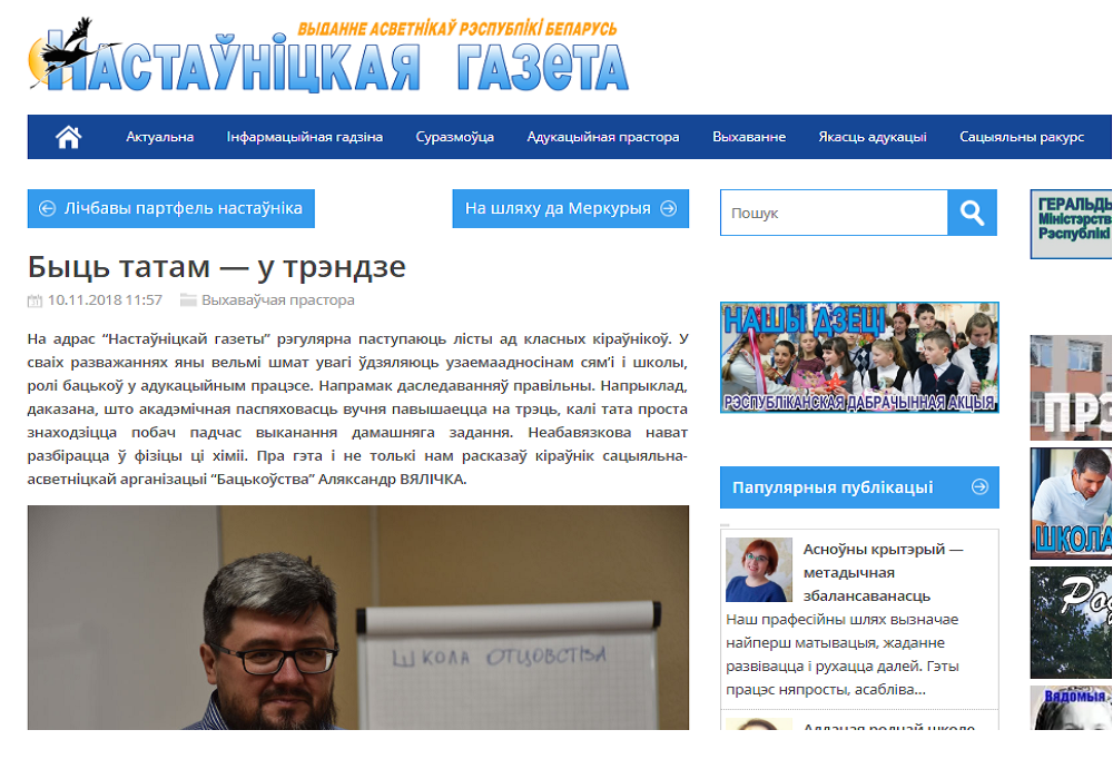 Статья директора СПУ "Отцовство" Александра Величко, опубликованная в январском номере ежемесячного педагогического журнала «Выхаванне і дадатковая адукацыя» .